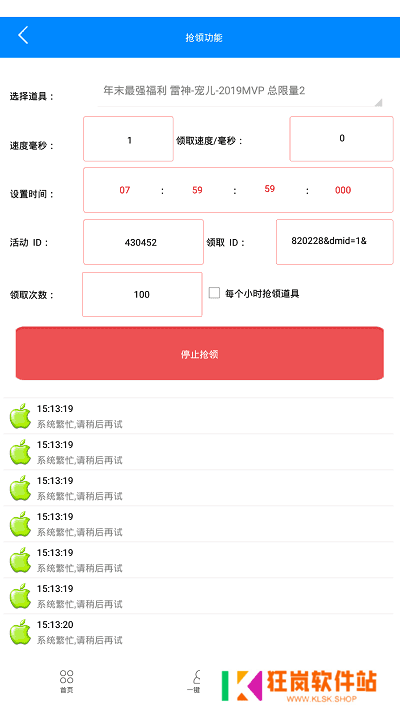 设置领取次数,次数越多,获得奖品的几率也就越大。活动不同于刮刮卡,跟占卜,很少可以连着爆,所以五次五次多抽比连抽几率高。还有就是速度的问题,每次都是不出就换一种速度 1888 2000 2222这三种速度随机来。