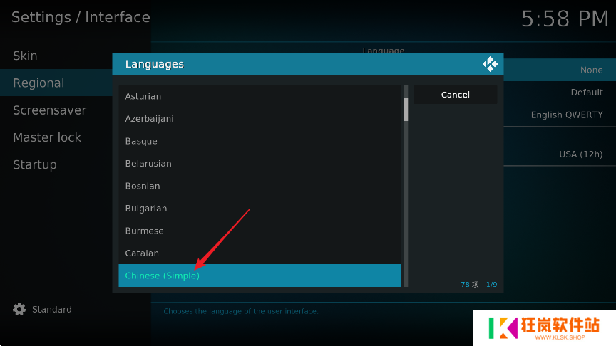 6、在弹出的语言选择窗口中找到“Chinese(Simple)”。