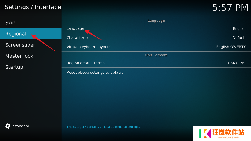 5、关掉窗口,在刚刚第三步的那个窗口选择“Regional”→“Language”。