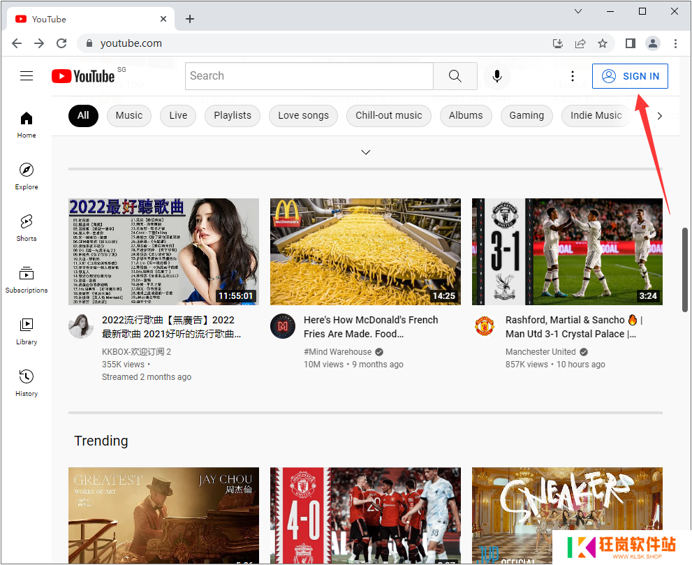 1.首先,我们先进入到YouTube的官网,然后点击YouTube右侧顶部的“SIGNIN”按钮。