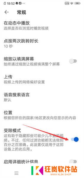 4.在最下方有一个“受限模式”大家点击一下就关闭了,蓝色就代表打开状态,灰色是关闭状态。