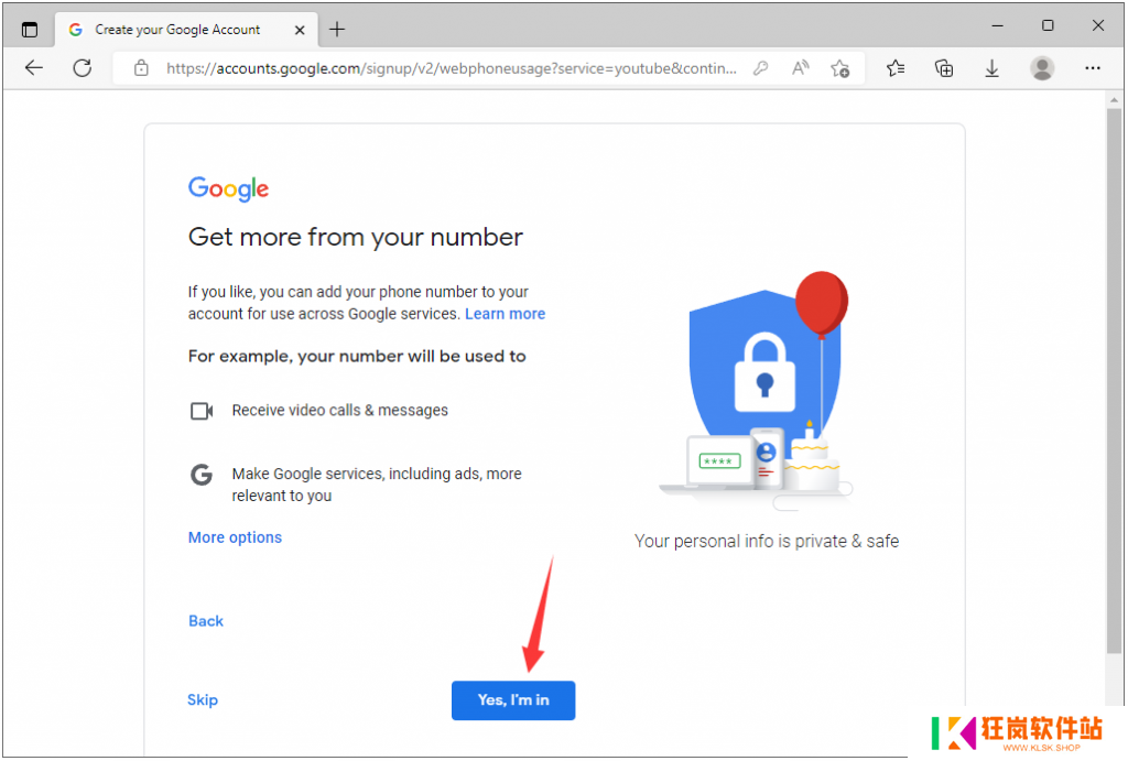 10.该页面主要是在未来可能会给您发布一些广告信息、以及把您的手机加入到Google账户来保证后期的安全。
