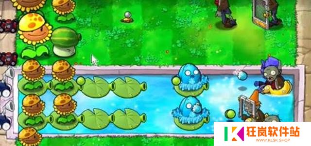 4、在泳池中种植两个寒冰坚果,对敌人造成减速效果。