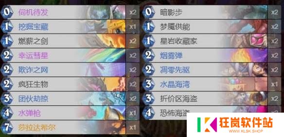 2、思路偏极限快攻,反复回手凋零先驱、三个(5/5的)折价区海盗以及新增的燃薪之剑+恐怖海盗都是准时打出就赢一半的combo,缺点是完全没续航。