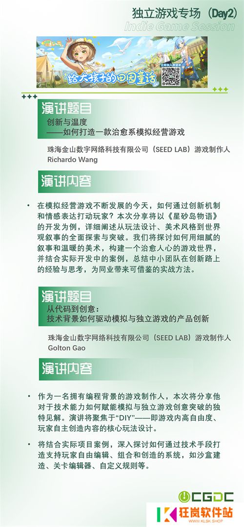 2025 CGDC 将继续聚焦技术赋能与创新实践,今年大会定档 8 月 1 日至 2 日与 ChinaJoy 同期举办,通过 2 天 8 个专场、60+ 前沿技术解析与行业洞见分享;N 个合作企业专场,为开发者们搭建深度互动交流平台。更多精彩议程正持续揭晓中,欢迎持续关注官方渠道获取最新动态。
