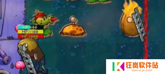 3、接着在最下方位置同时放两个扶梯僵尸,就能降低另一个僵尸受到的伤害。
