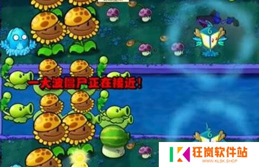 7、最后在泳池中补充两排豌豆射手就可以轻松过关了。