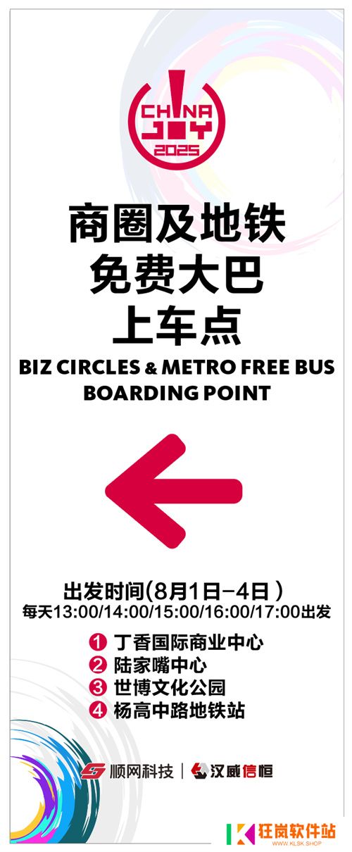 为切实解决观众散场后的返程瓶颈,主办方在上海新国际博览中心与丁香国际商业中心、陆家嘴中心L+MALL、上海罗丹艺术中心之间在本届ChinaJoy开展期间将开设专门的短驳车,方便大家前去商圈感受不同的联动体验;同时增设由展会现场前往阳高中路地铁站的便捷接驳,高效纾解了各地观众在尽兴观展后的交通难题,提供了便捷舒心的返程选择,深度联动展览效应与城市消费场景,把ChinaJoy的超高人气转化为刺激市区经济活力的“催化剂”,让ChinaJoy展会热力真正赋能整个城市的消费脉动。与浦东核心商圈携手点燃次元盛夏狂欢,一次前所未有的次元盛宴即将震撼来袭!
