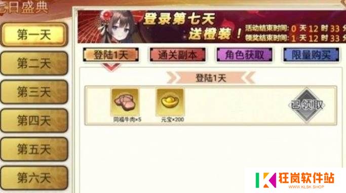 1、通关副本可领取礼包:340w银两、牛肉×37