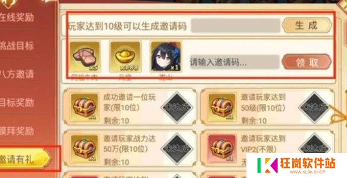 3、10级以上可以生成邀请码,50级以下可以填写邀请码,一个账号仅能享受一次邀请码活动。